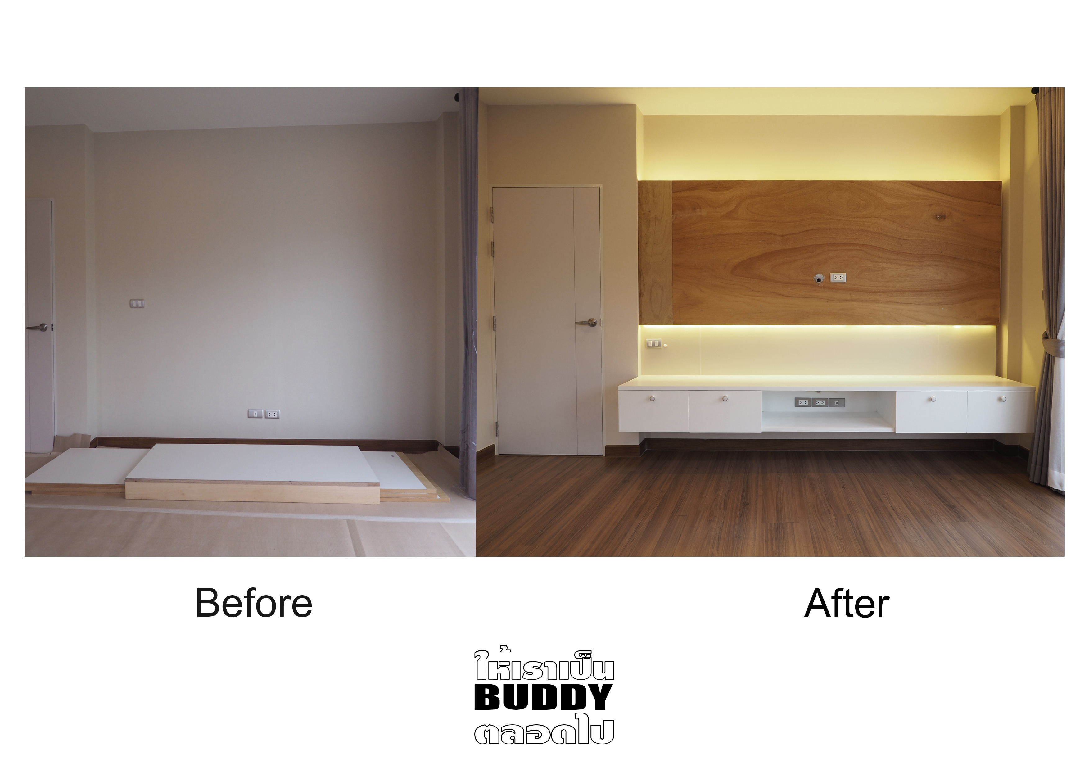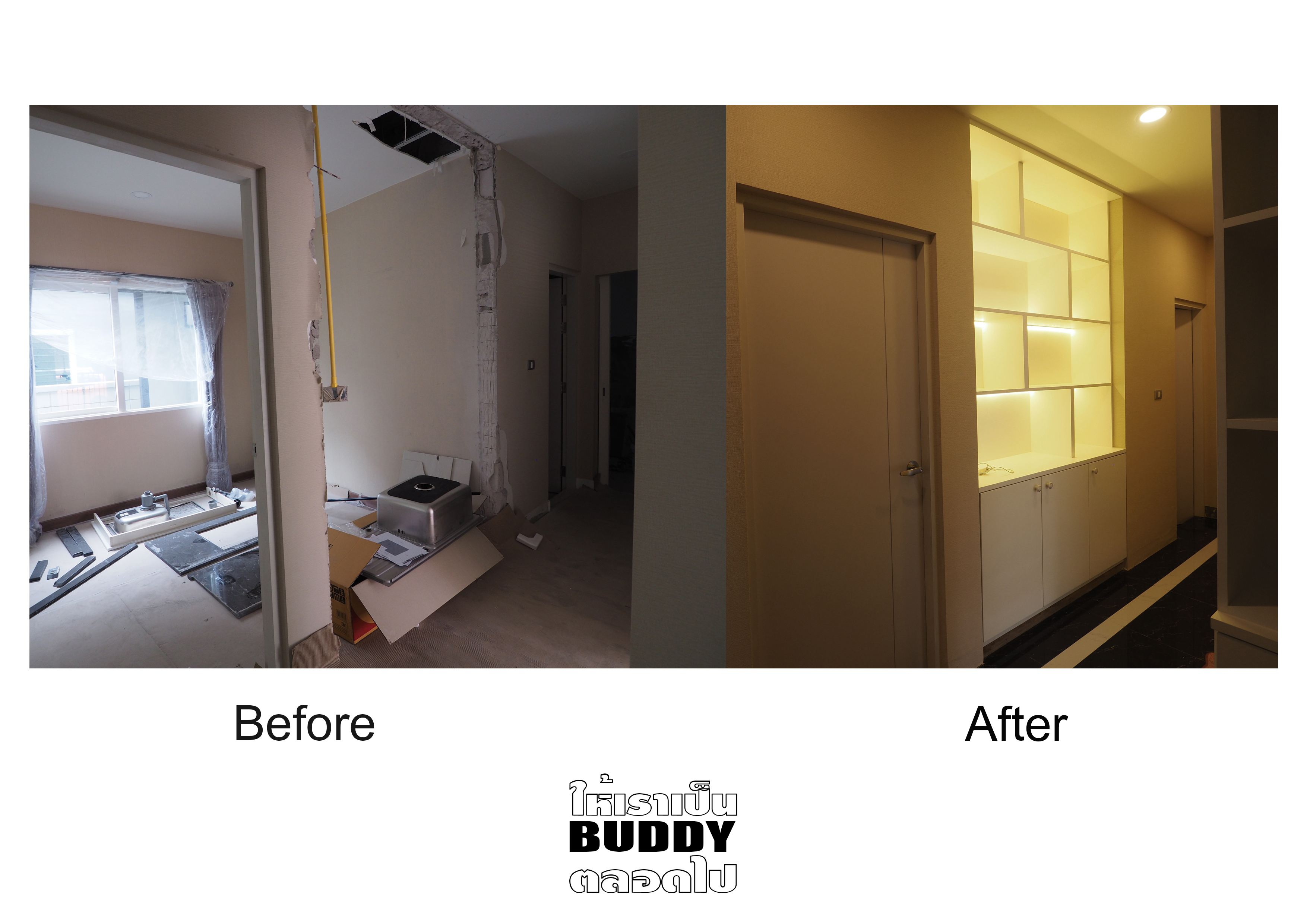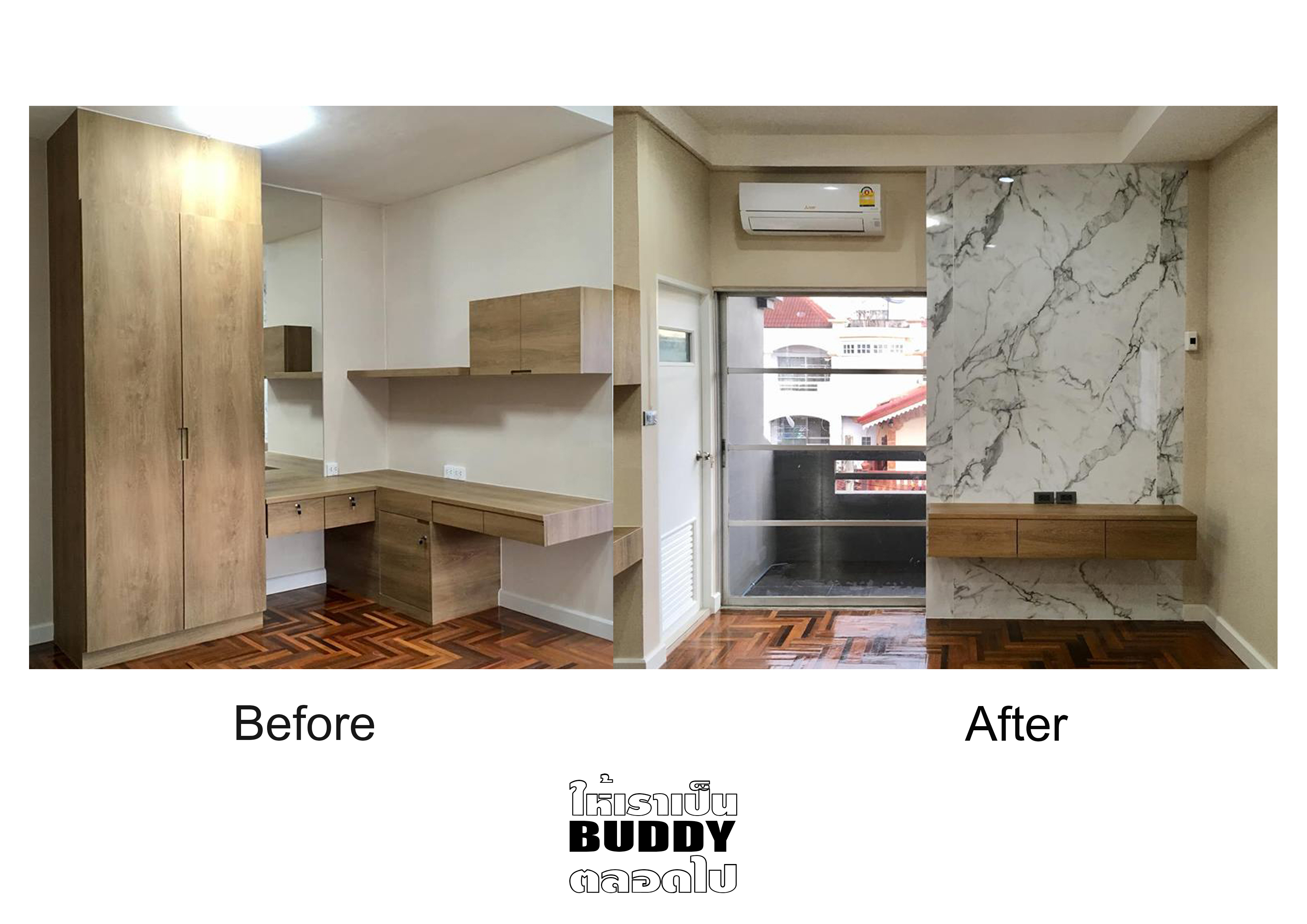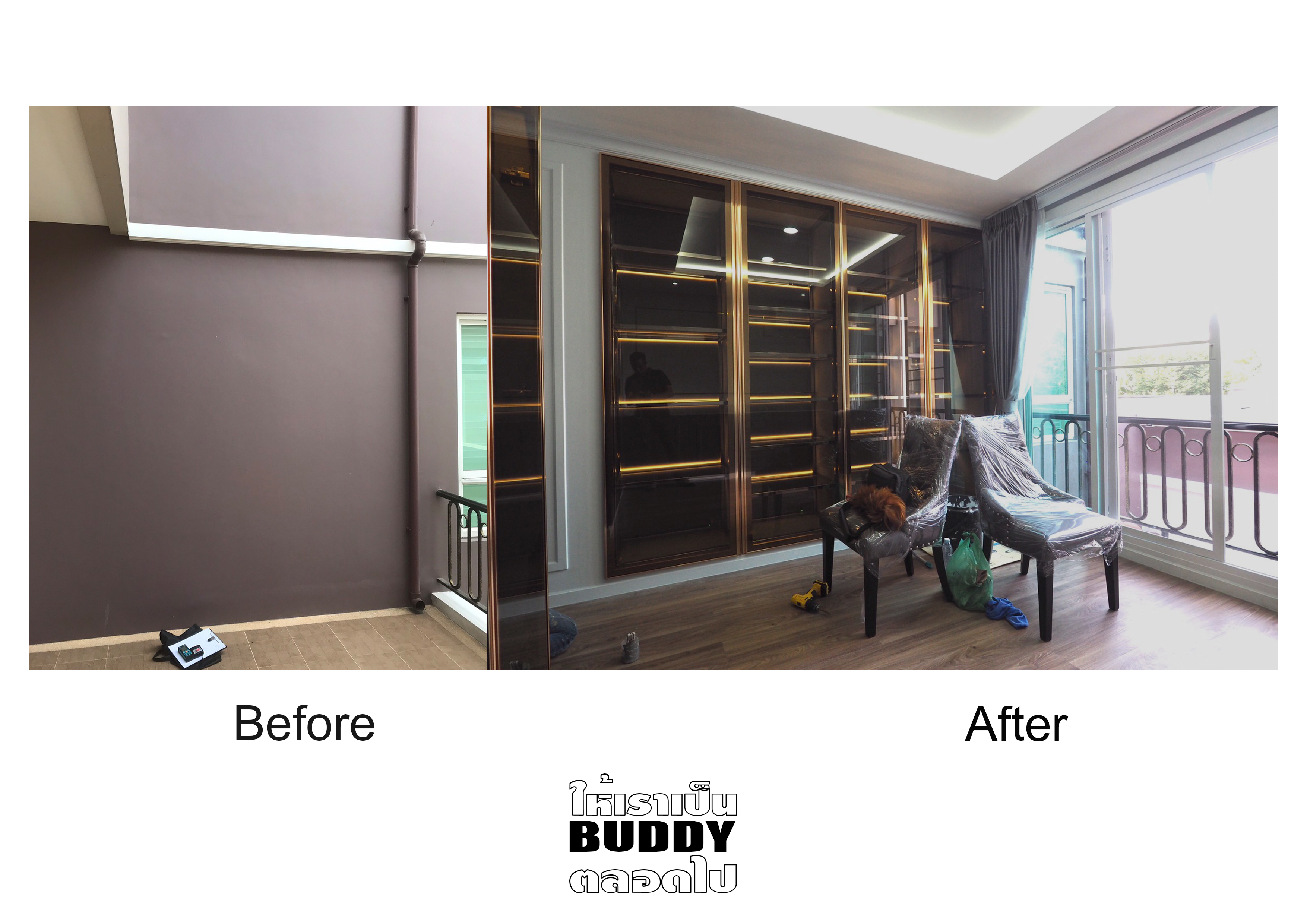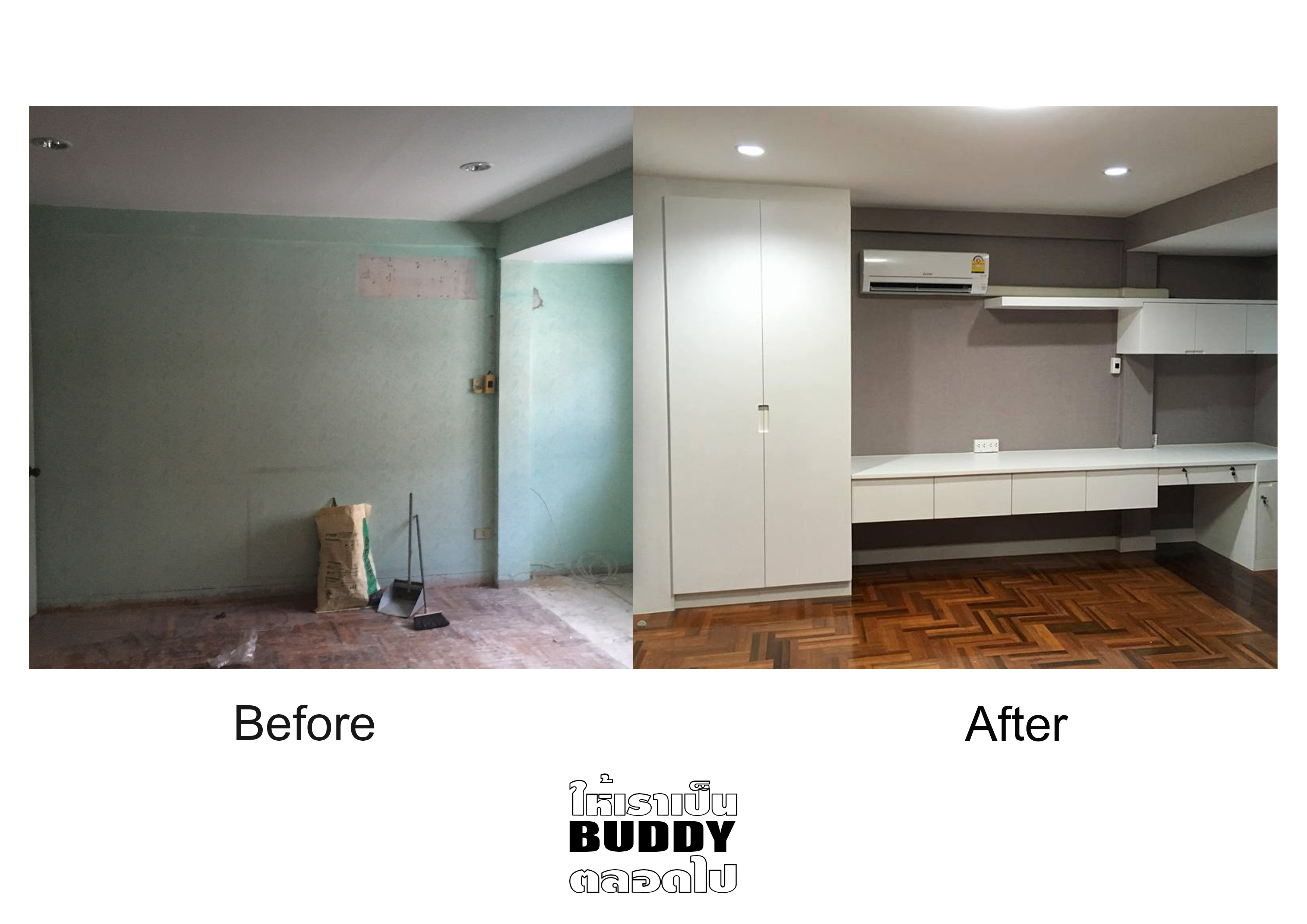 อาคารชุดอายุ28ปี งานเฟอร์นิเจอร์บิ้วอิน ขึ้นโครงไม้ทำสีพ่นอุตสาหกรรม ระบบไฟฟ้า Wallpaper ผ้าม่าน