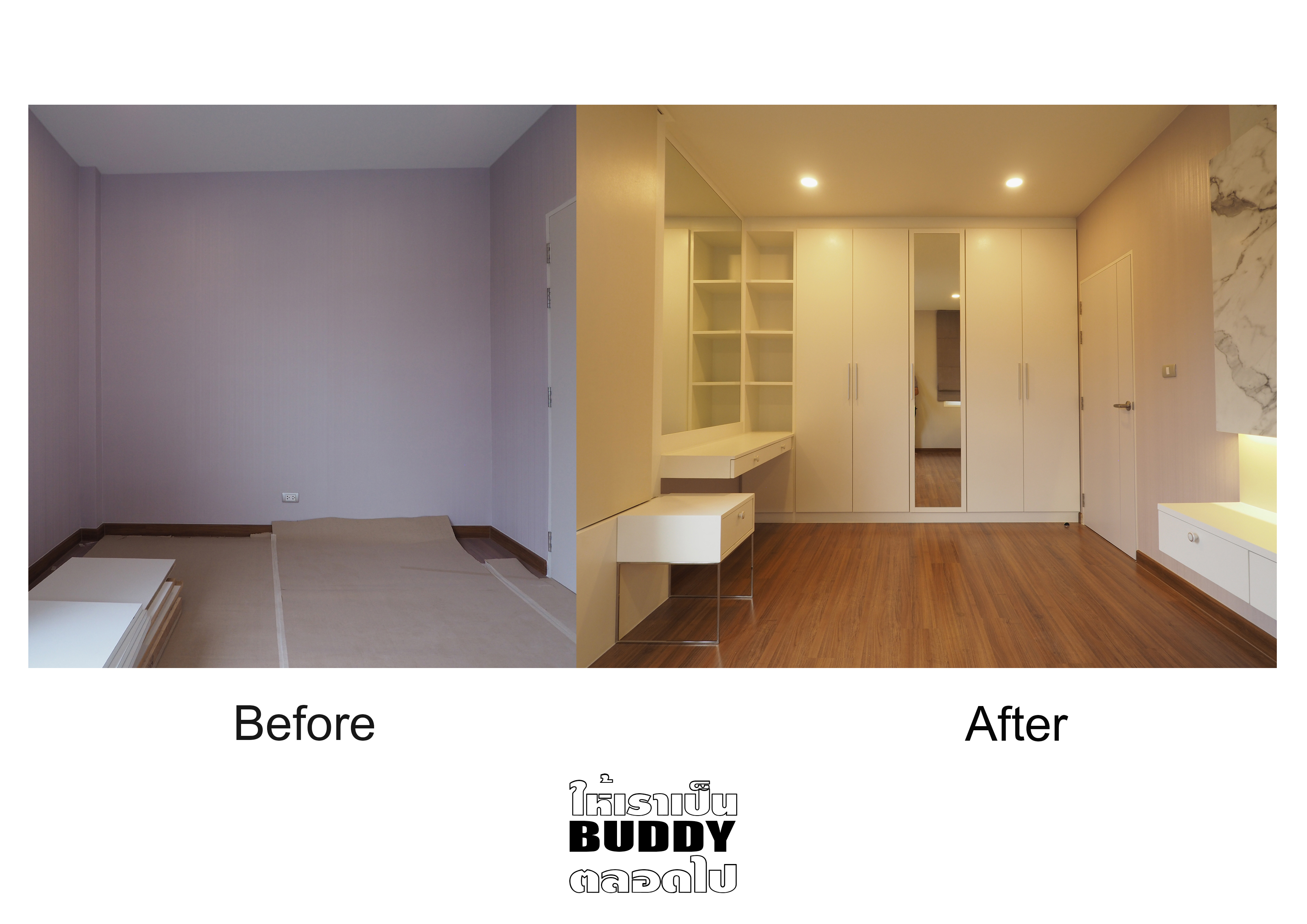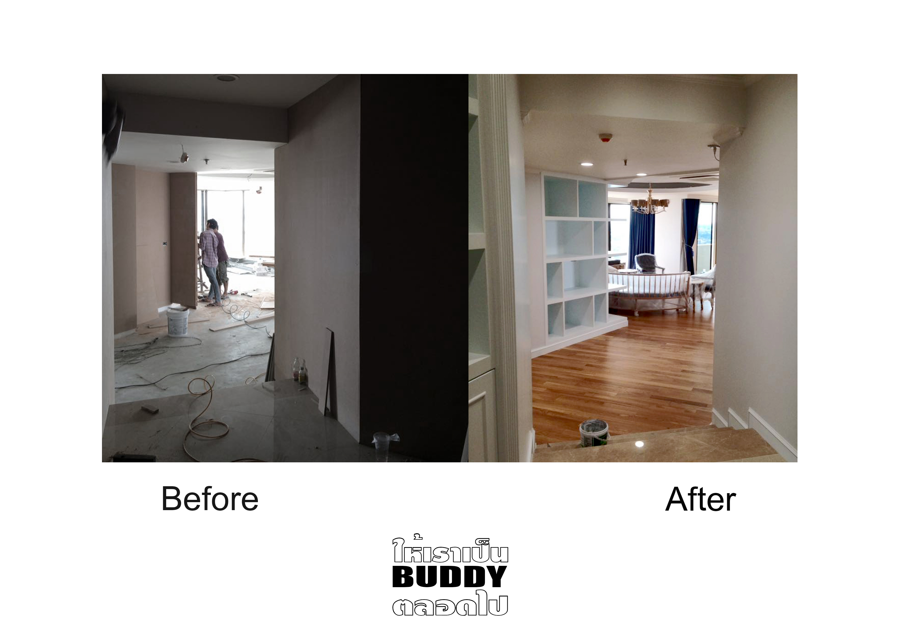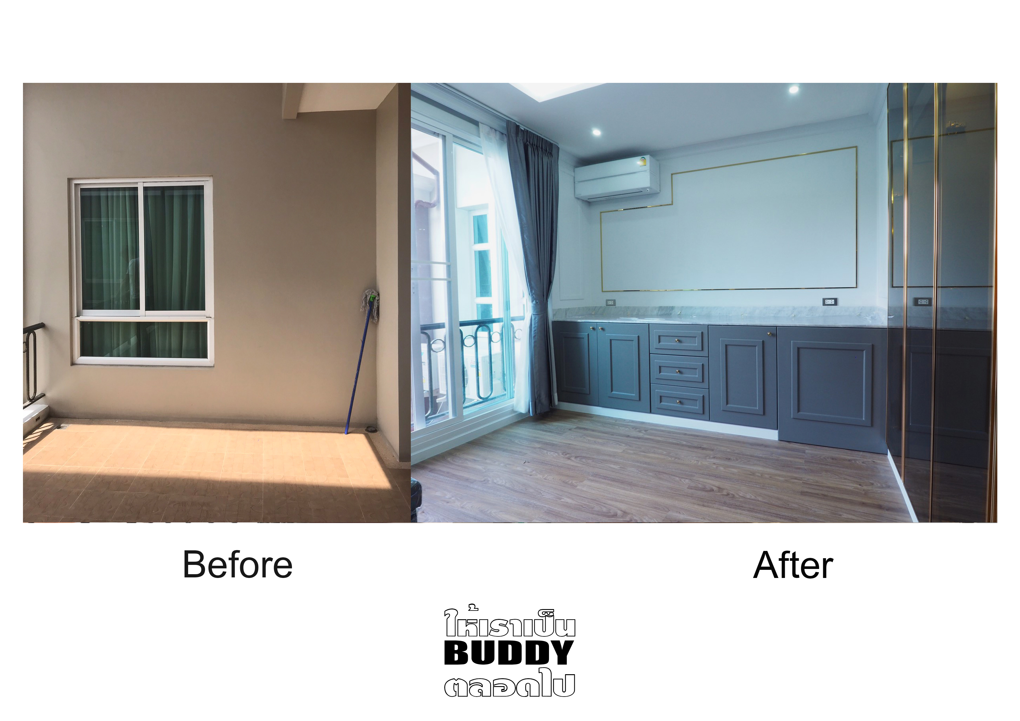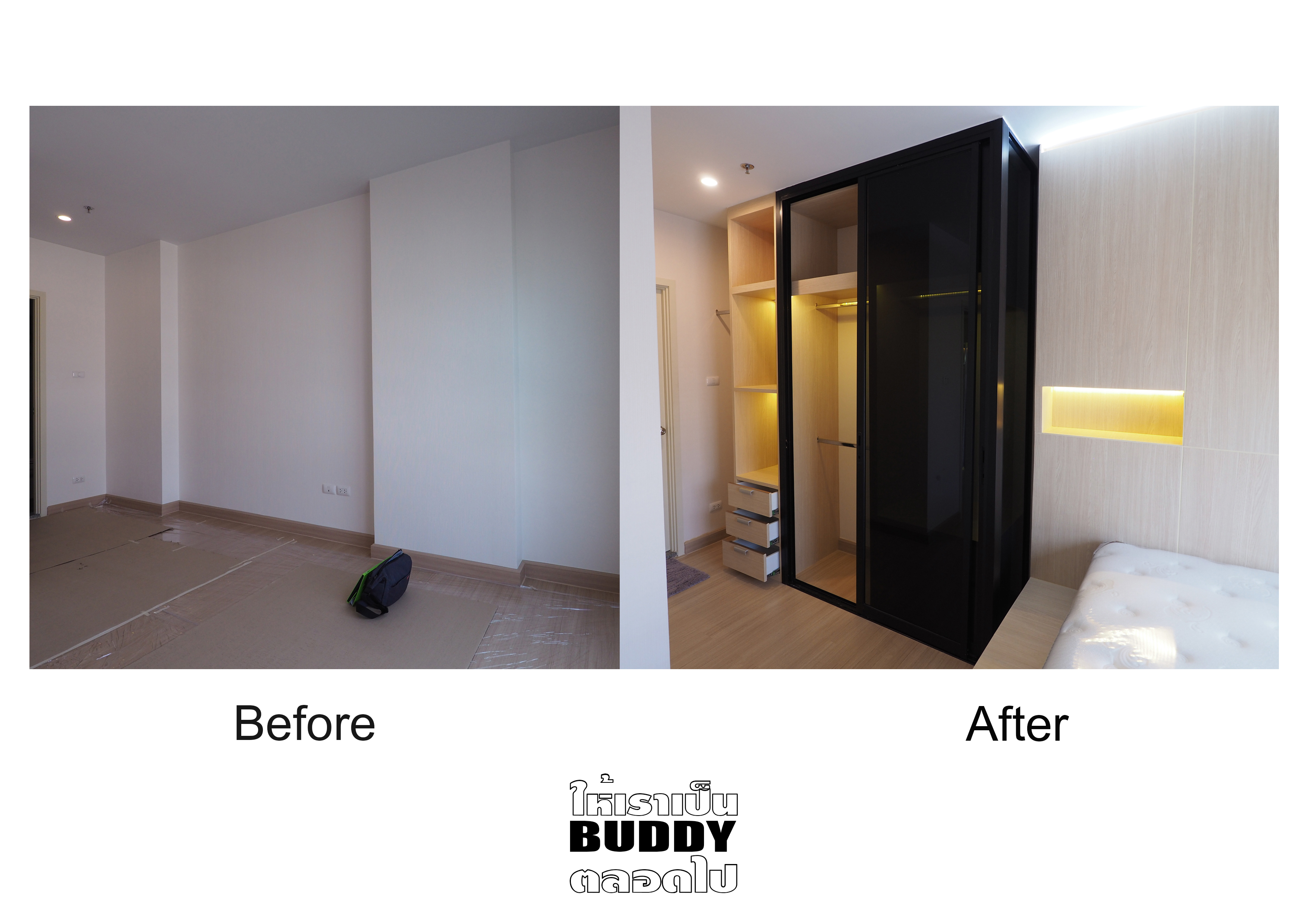 อาคารชุดอายุ28ปี งานเฟอร์นิเจอร์บิ้วอิน ขึ้นโครงไม้ทำสีพ่นอุตสาหกรรม ระบบไฟฟ้า Wallpaper ผ้าม่าน