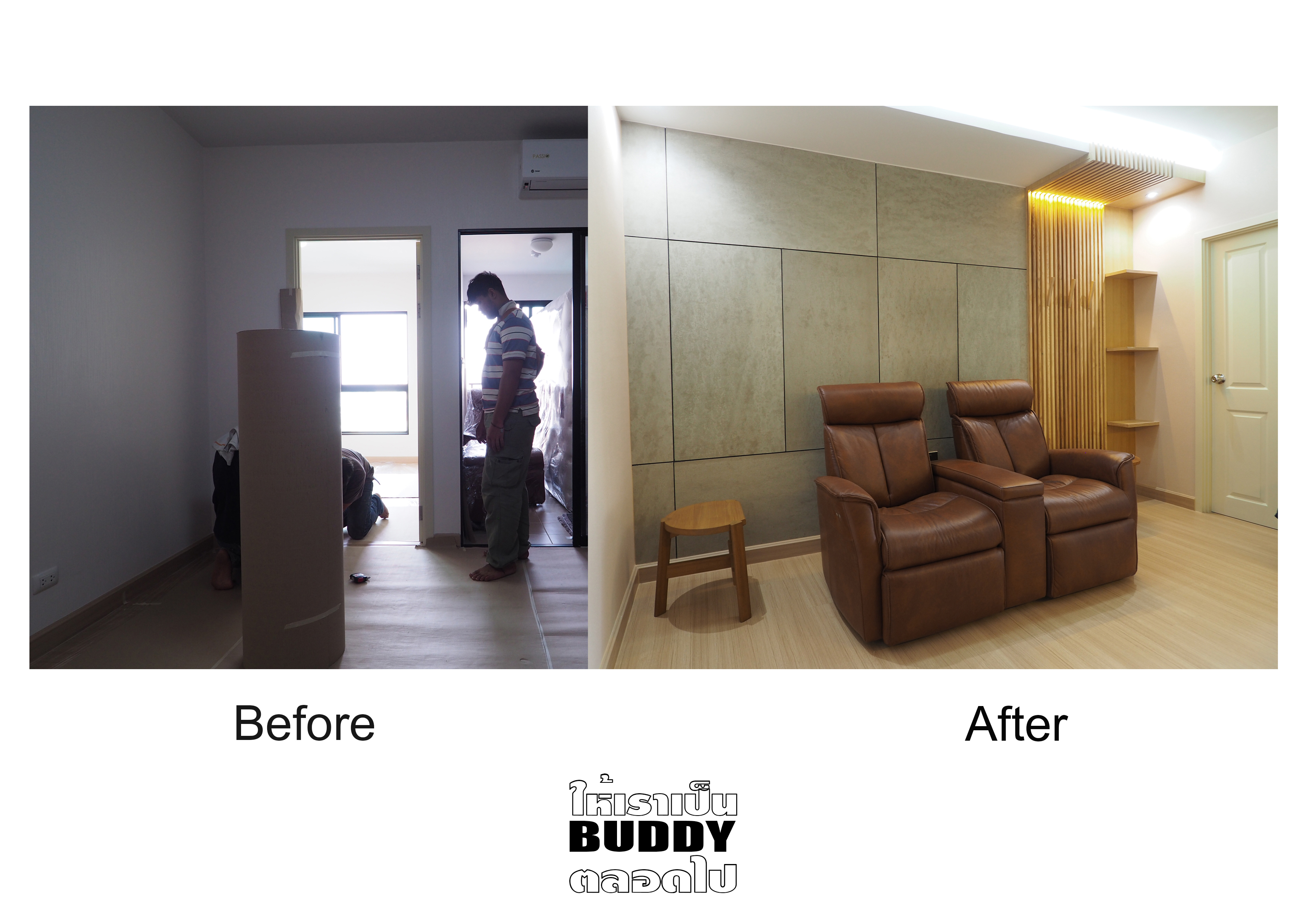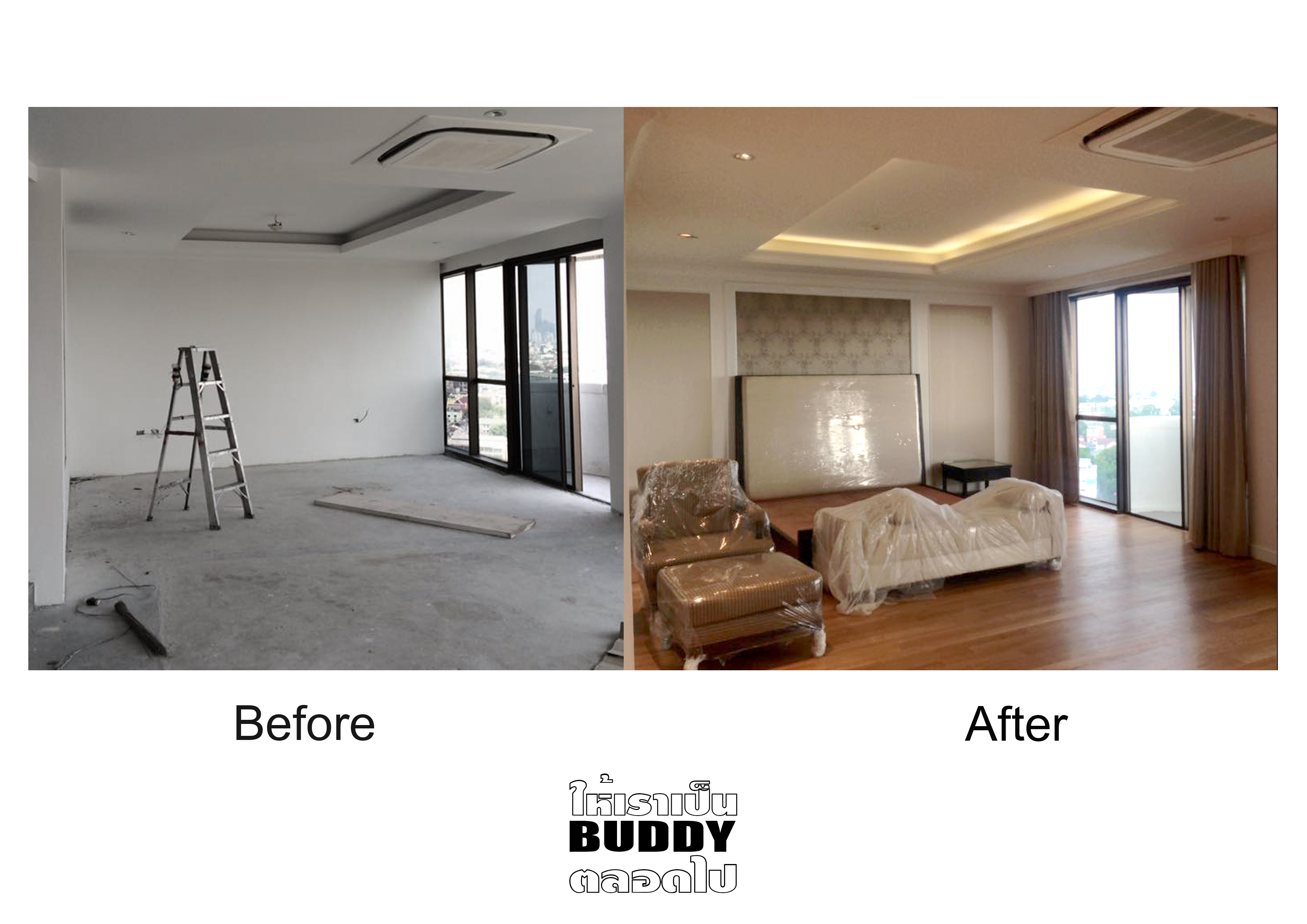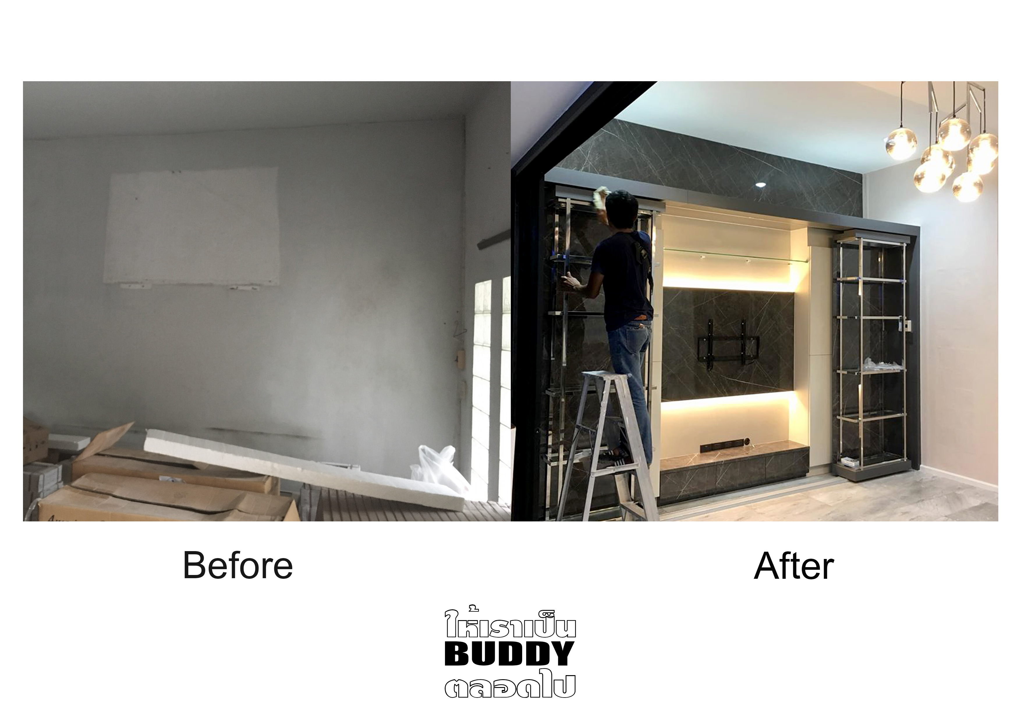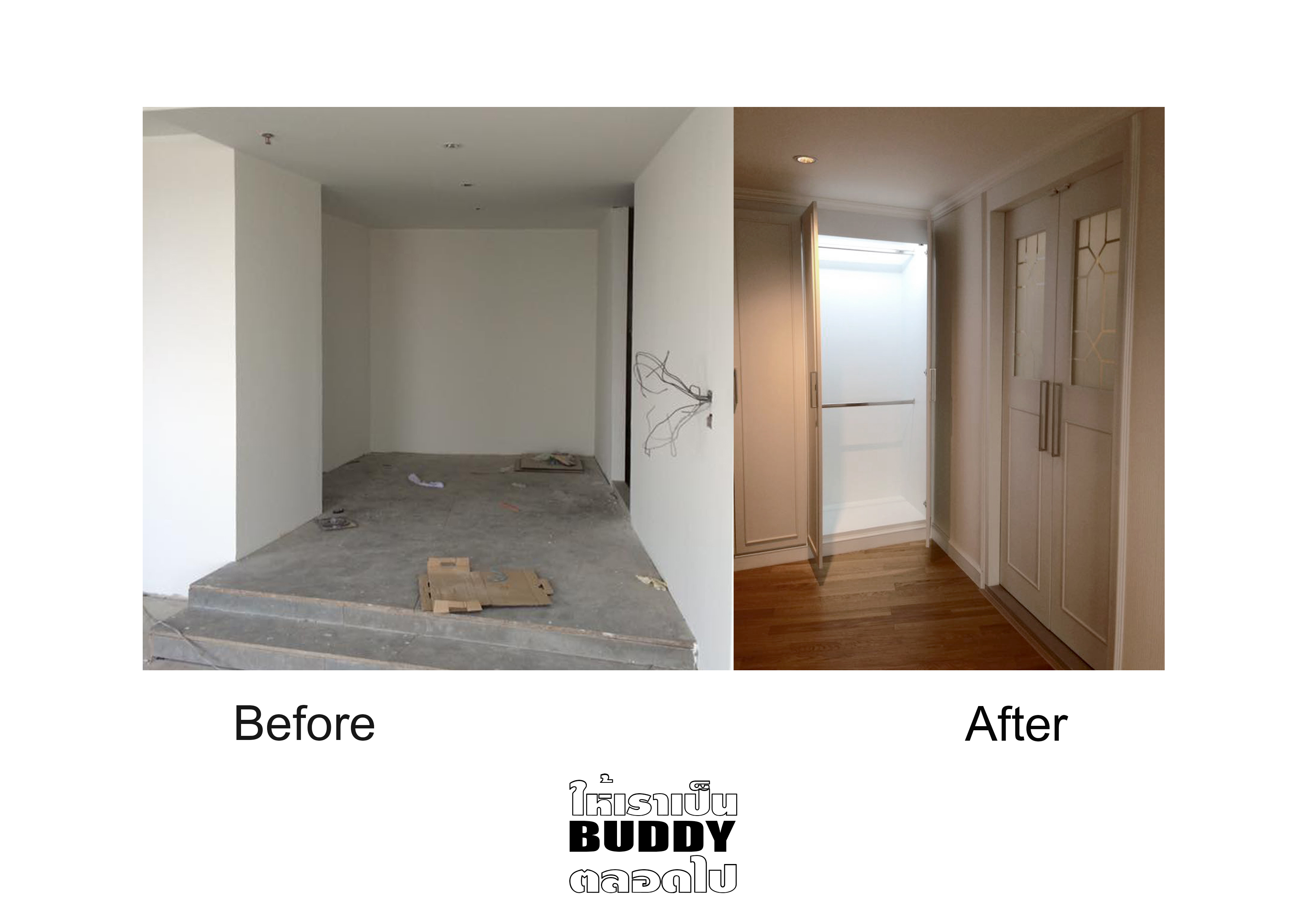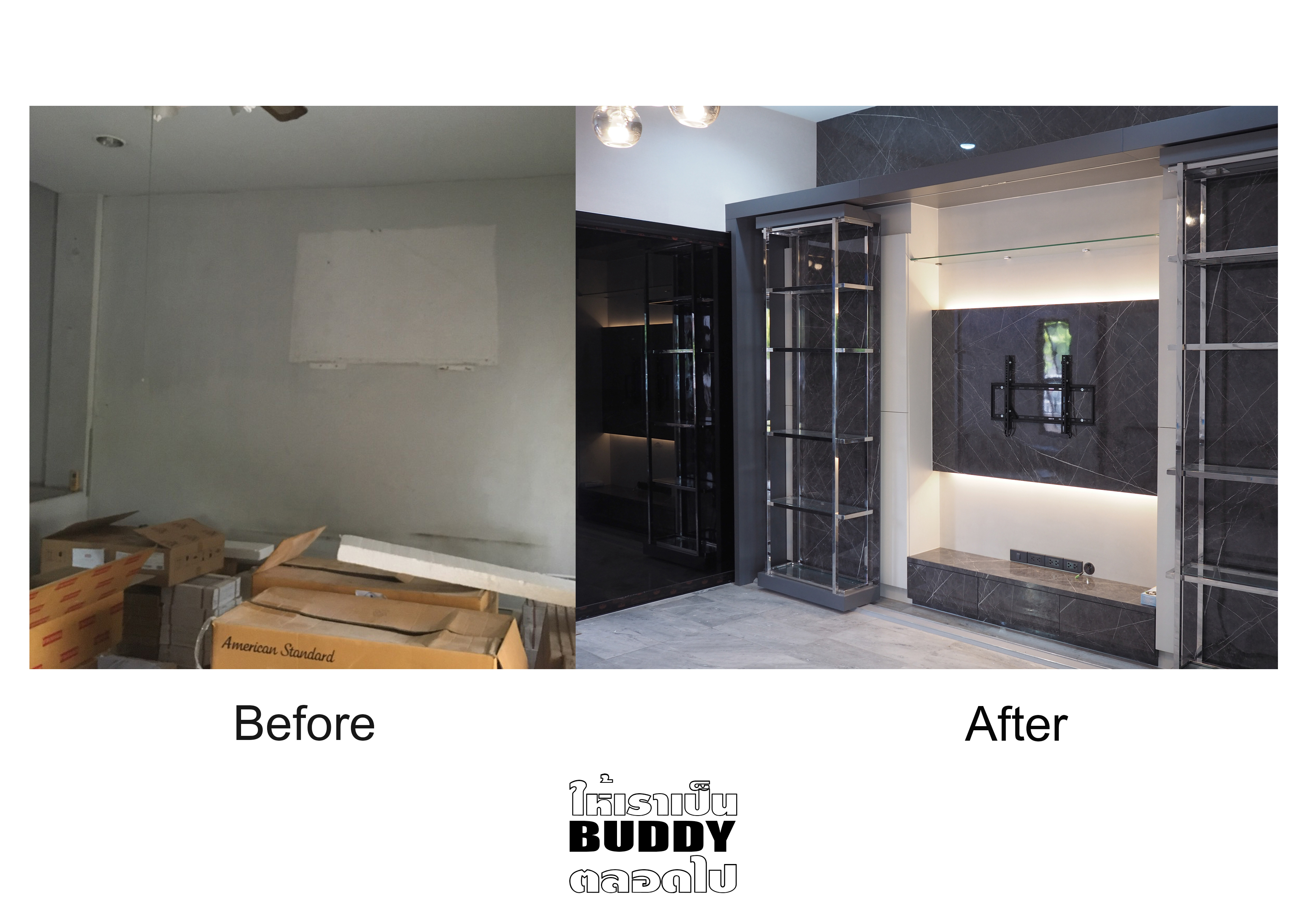 อาคารชุดอายุ28ปี งานเฟอร์นิเจอร์บิ้วอิน ขึ้นโครงไม้ทำสีพ่นอุตสาหกรรม ระบบไฟฟ้า Wallpaper ผ้าม่าน