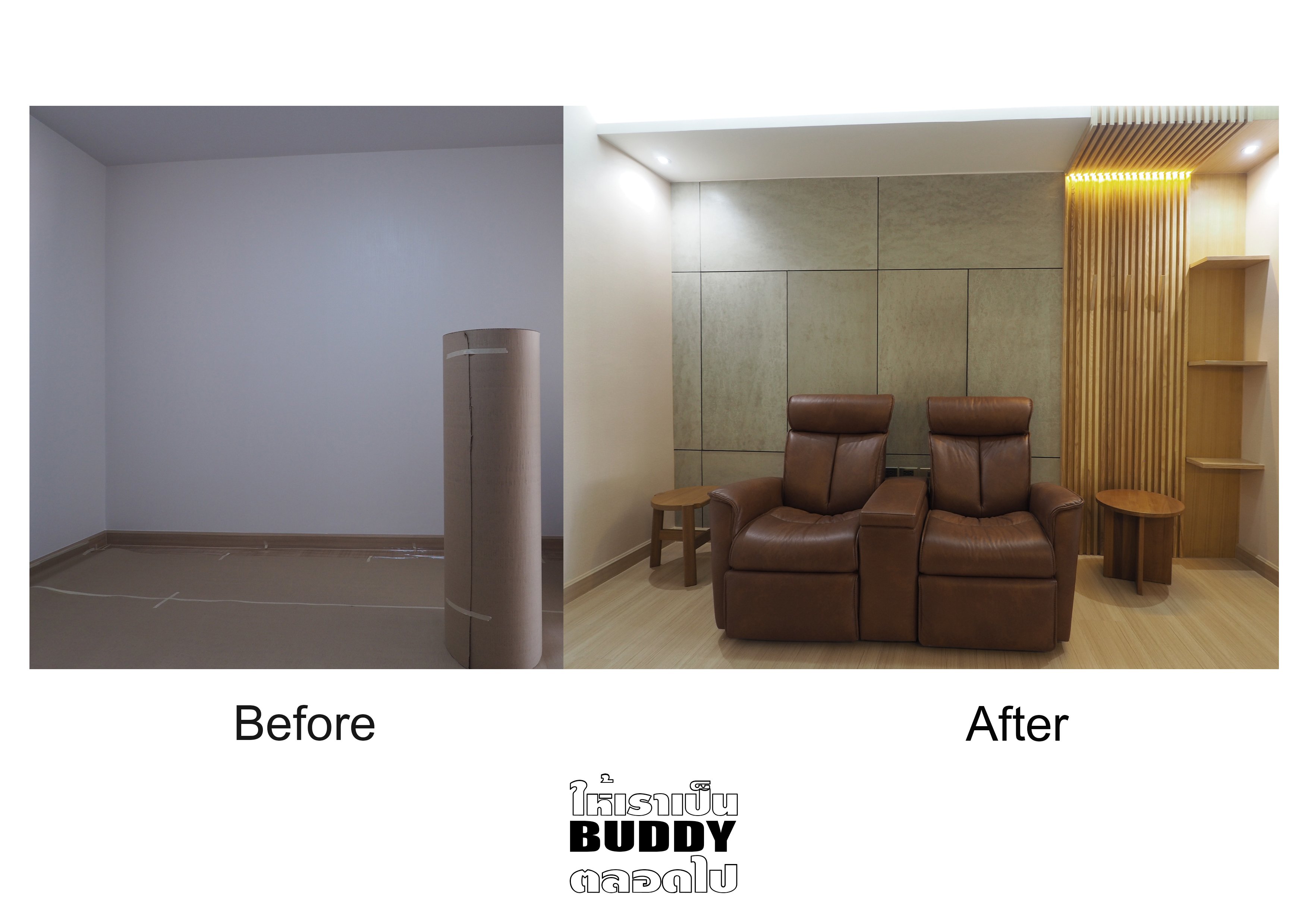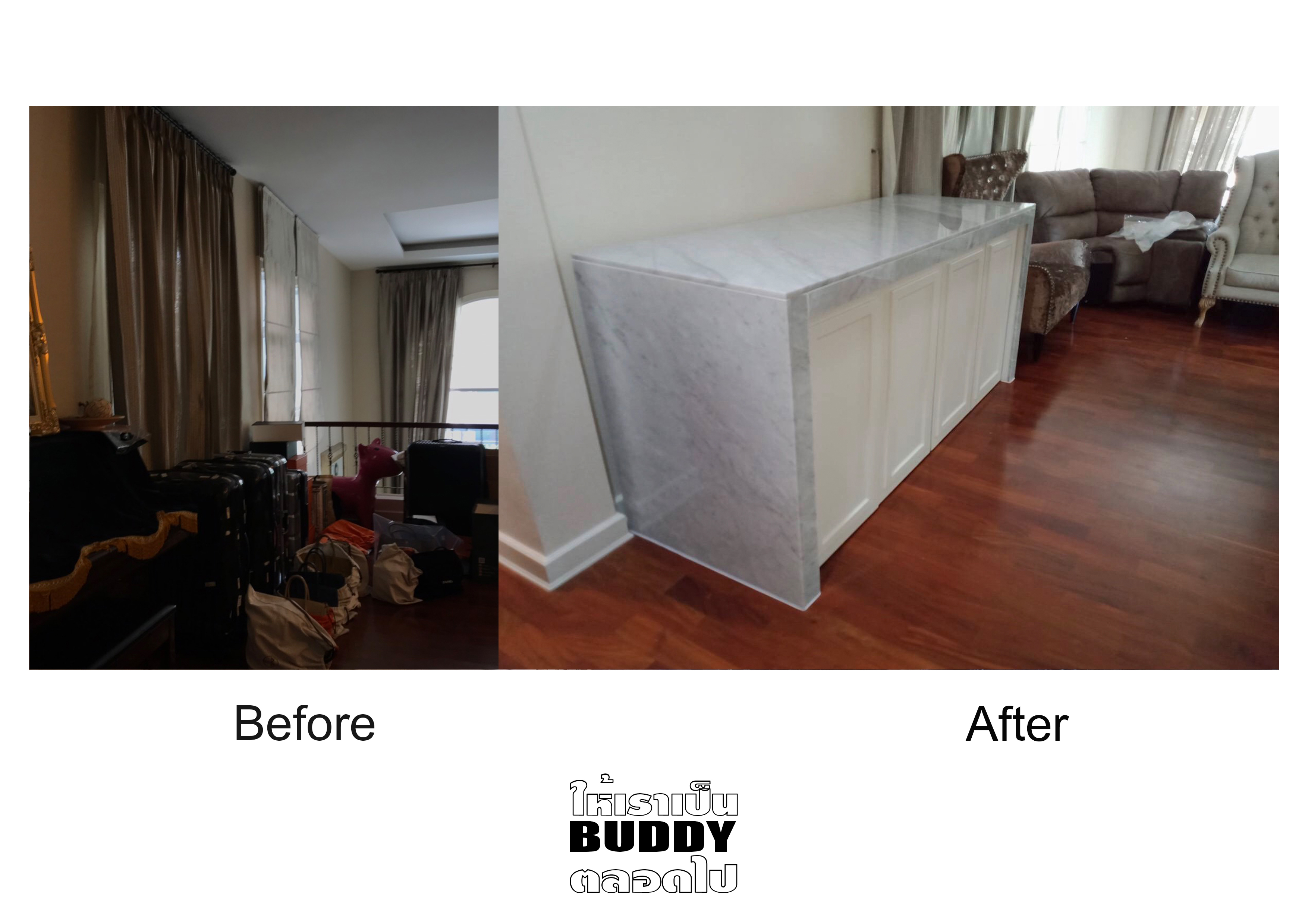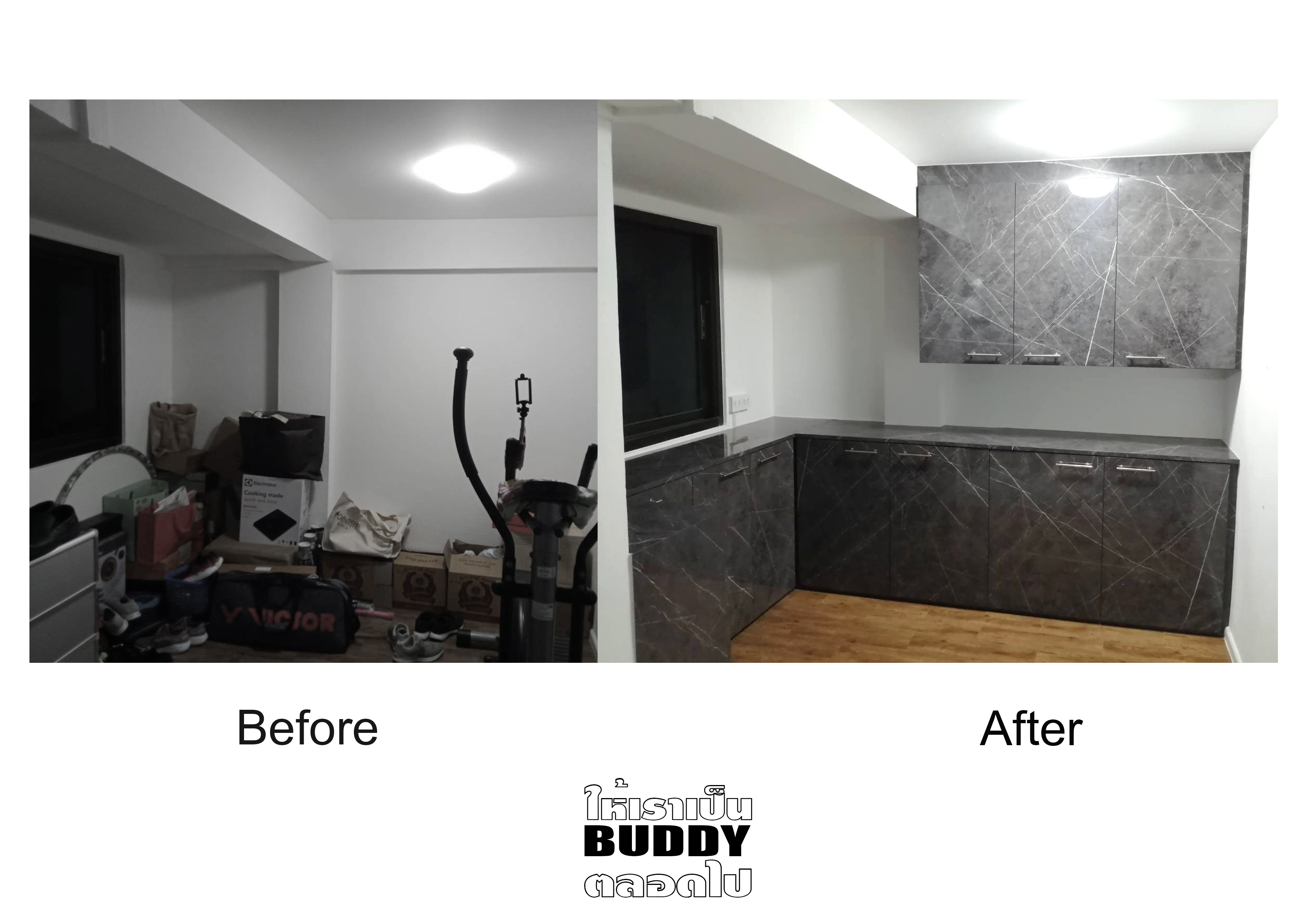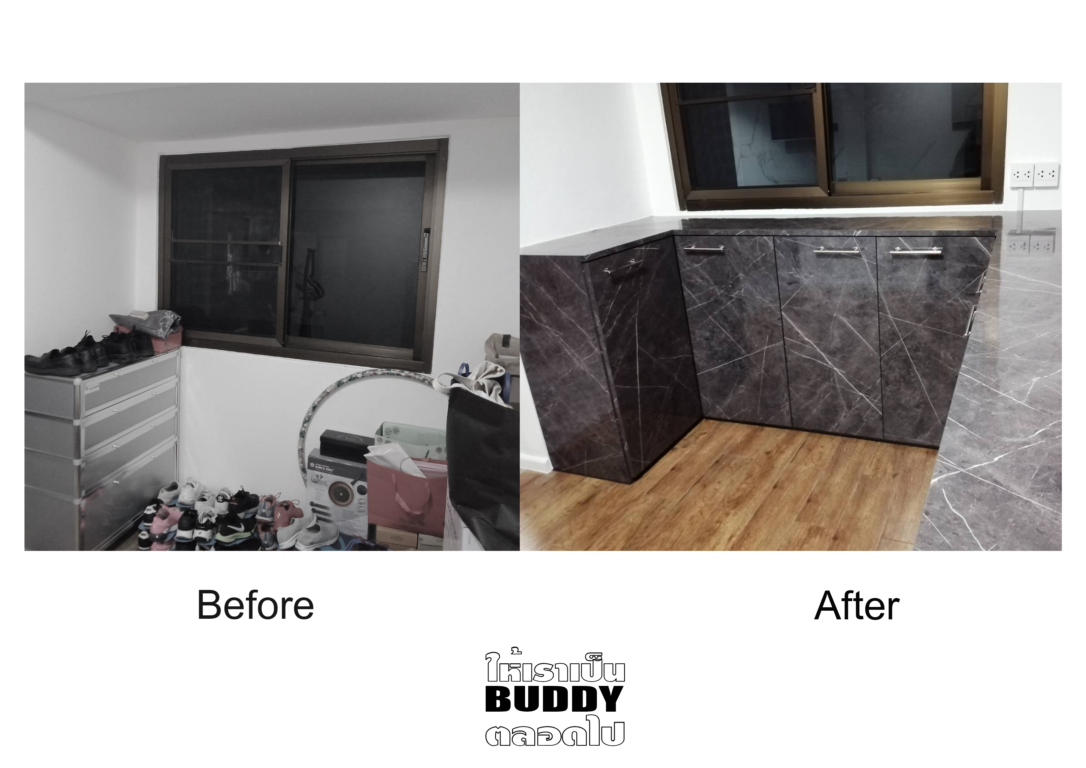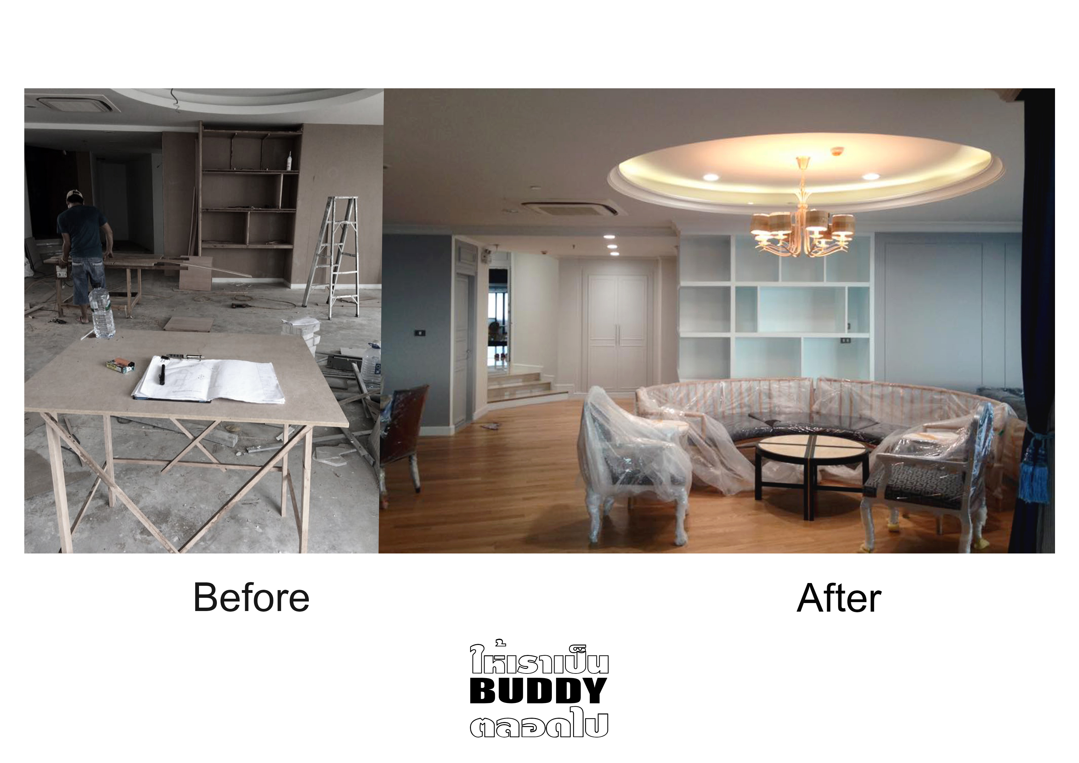 อาคารชุดอายุ28ปี งานเฟอร์นิเจอร์บิ้วอิน ขึ้นโครงไม้ทำสีพ่นอุตสาหกรรม ระบบไฟฟ้า Wallpaper ผ้าม่าน