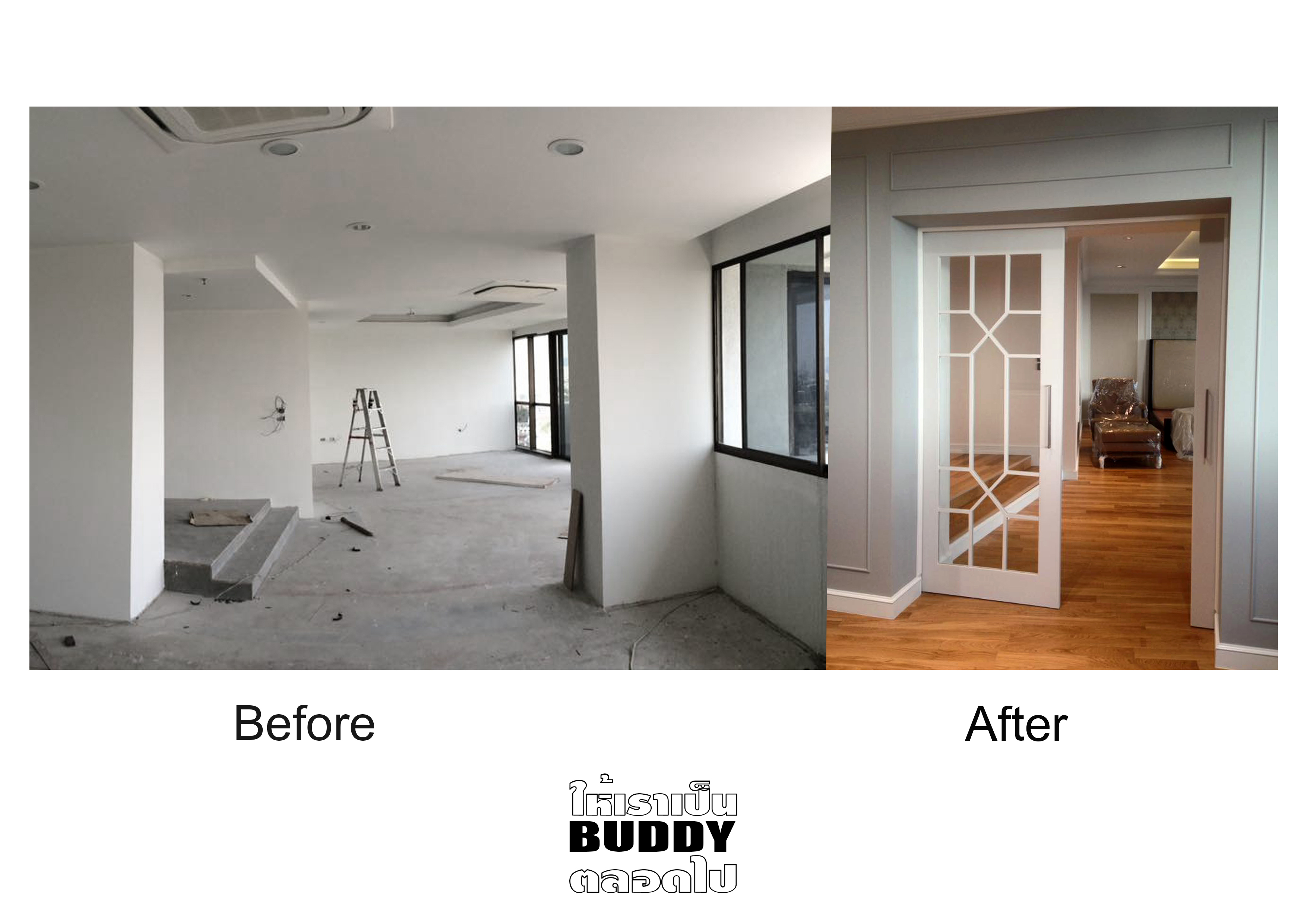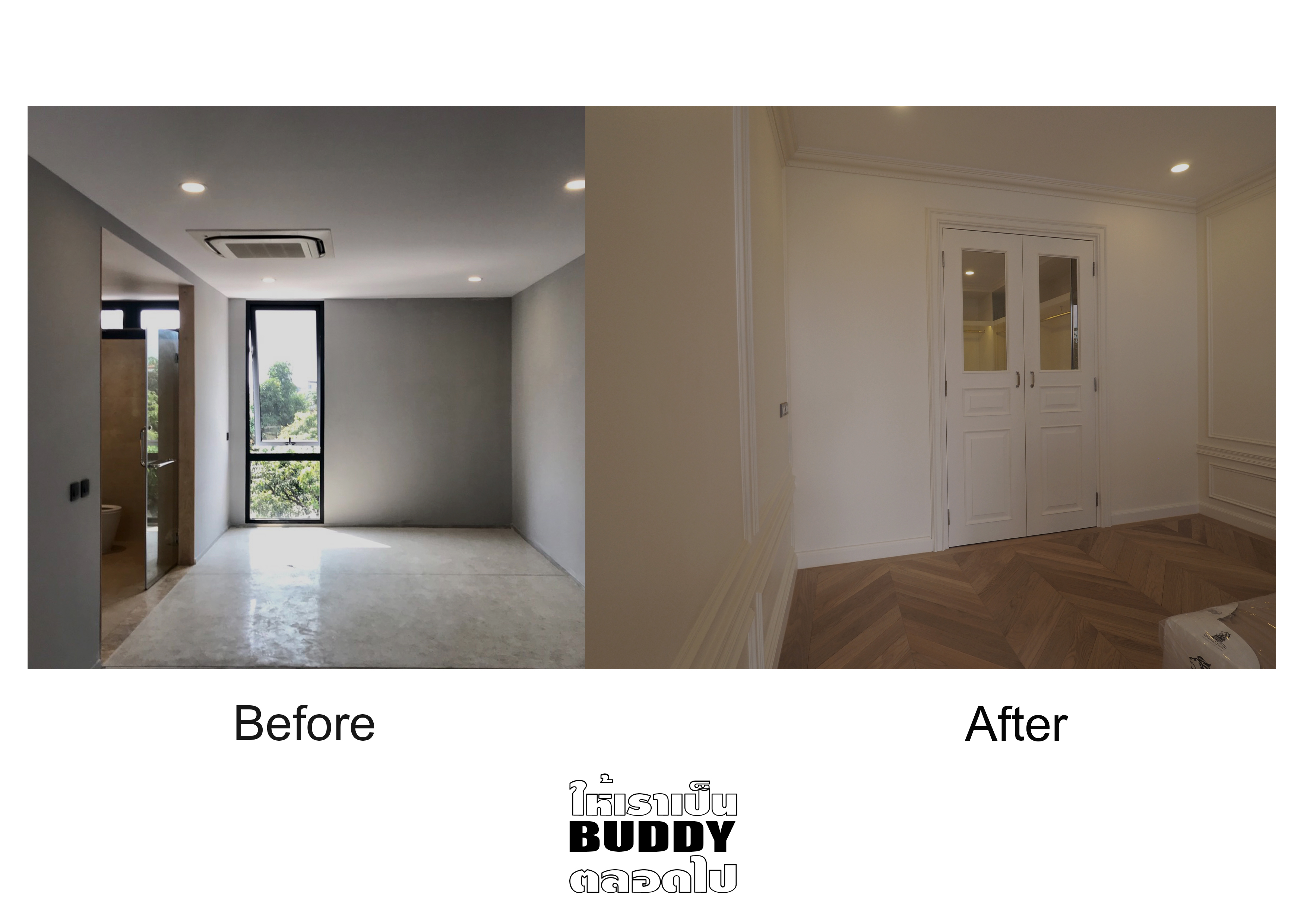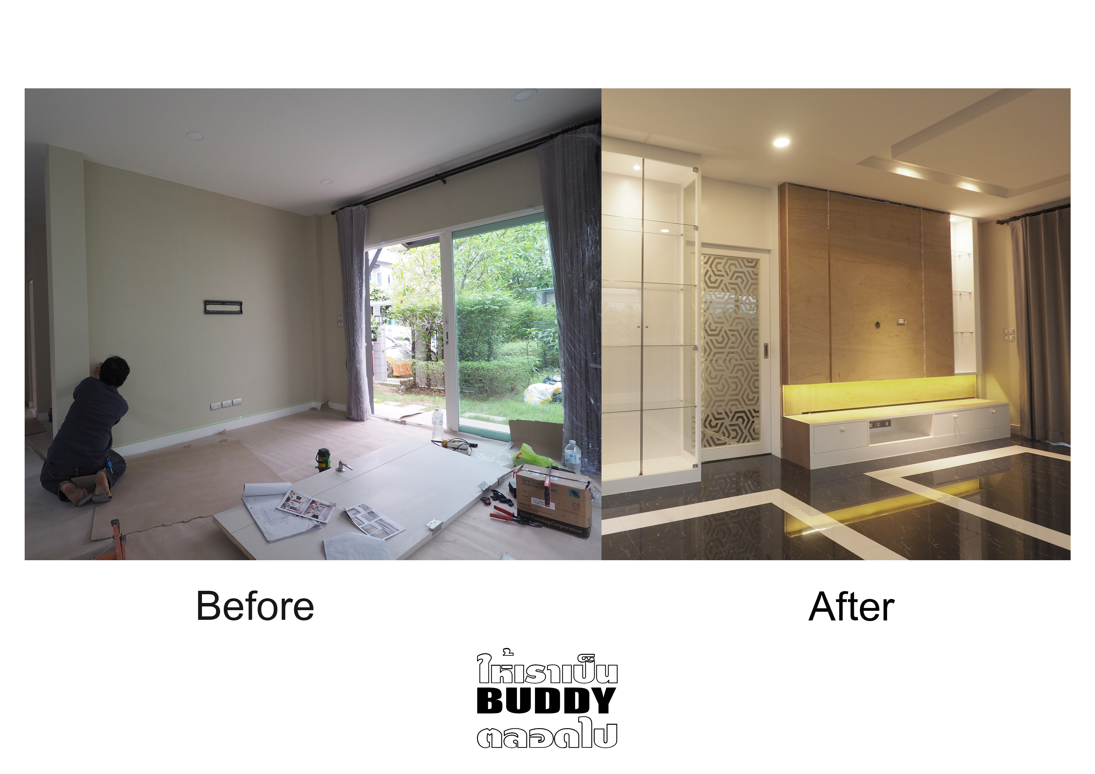 งานปรับแผนผังเดิมของบ้านเดิมตามความต้องการของลูกค้า งานระบบไฟฟ้า งานเฟอร์นิเจอร์บิ้วอิน งานม่าน และ wallpaper ระยะเวลา ผลิตที่โรงงาน30วัน และหน้างาน45วัน