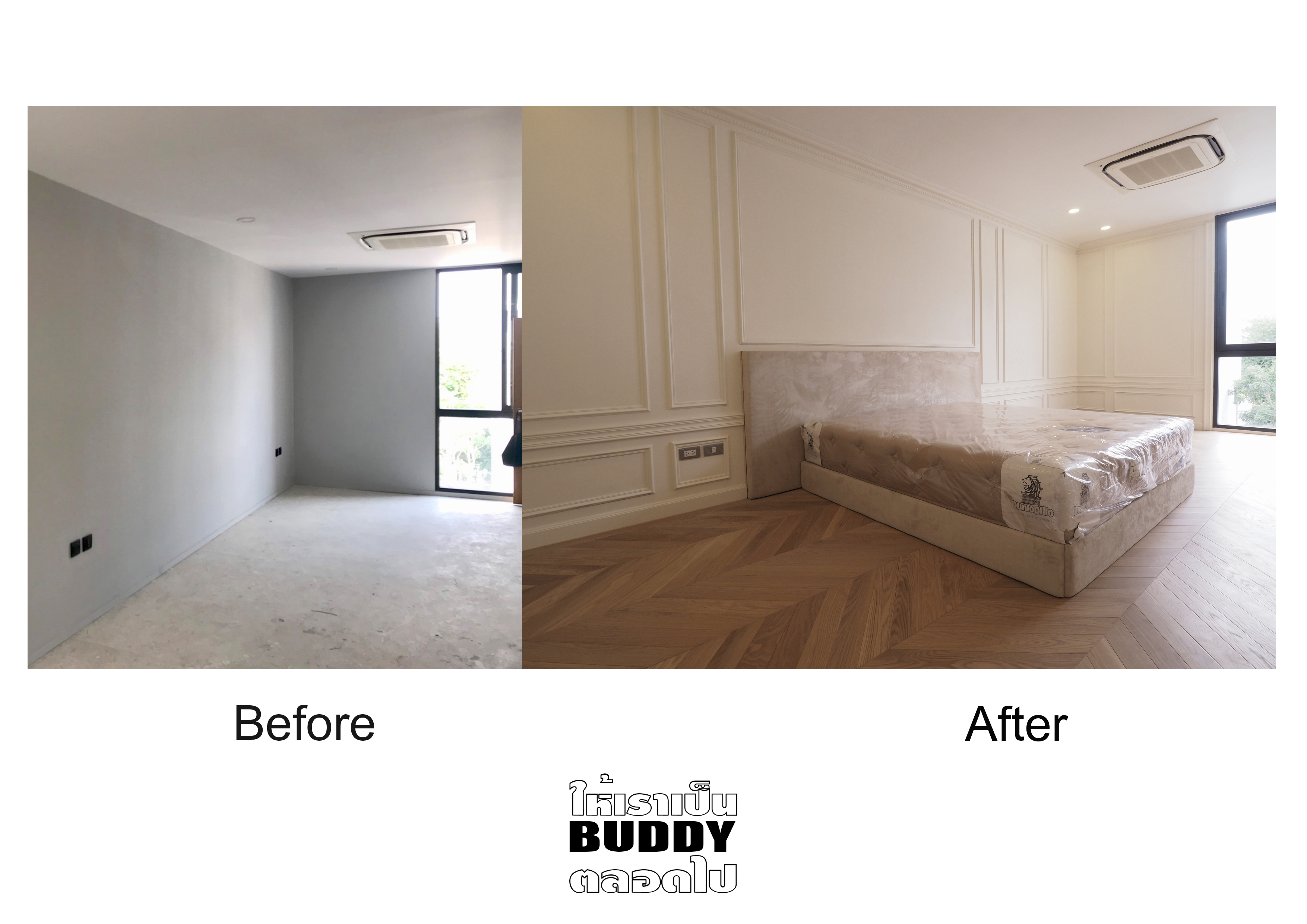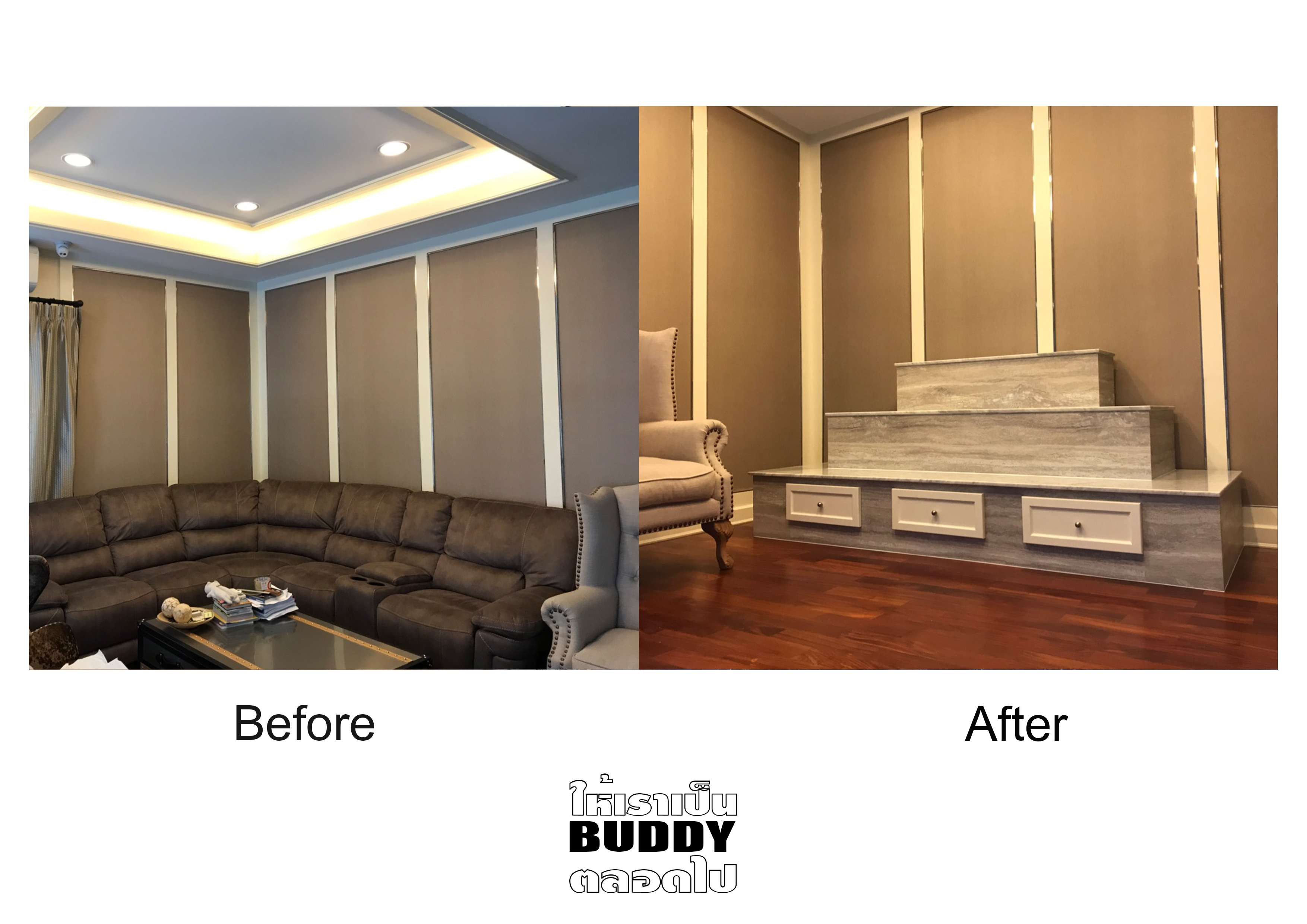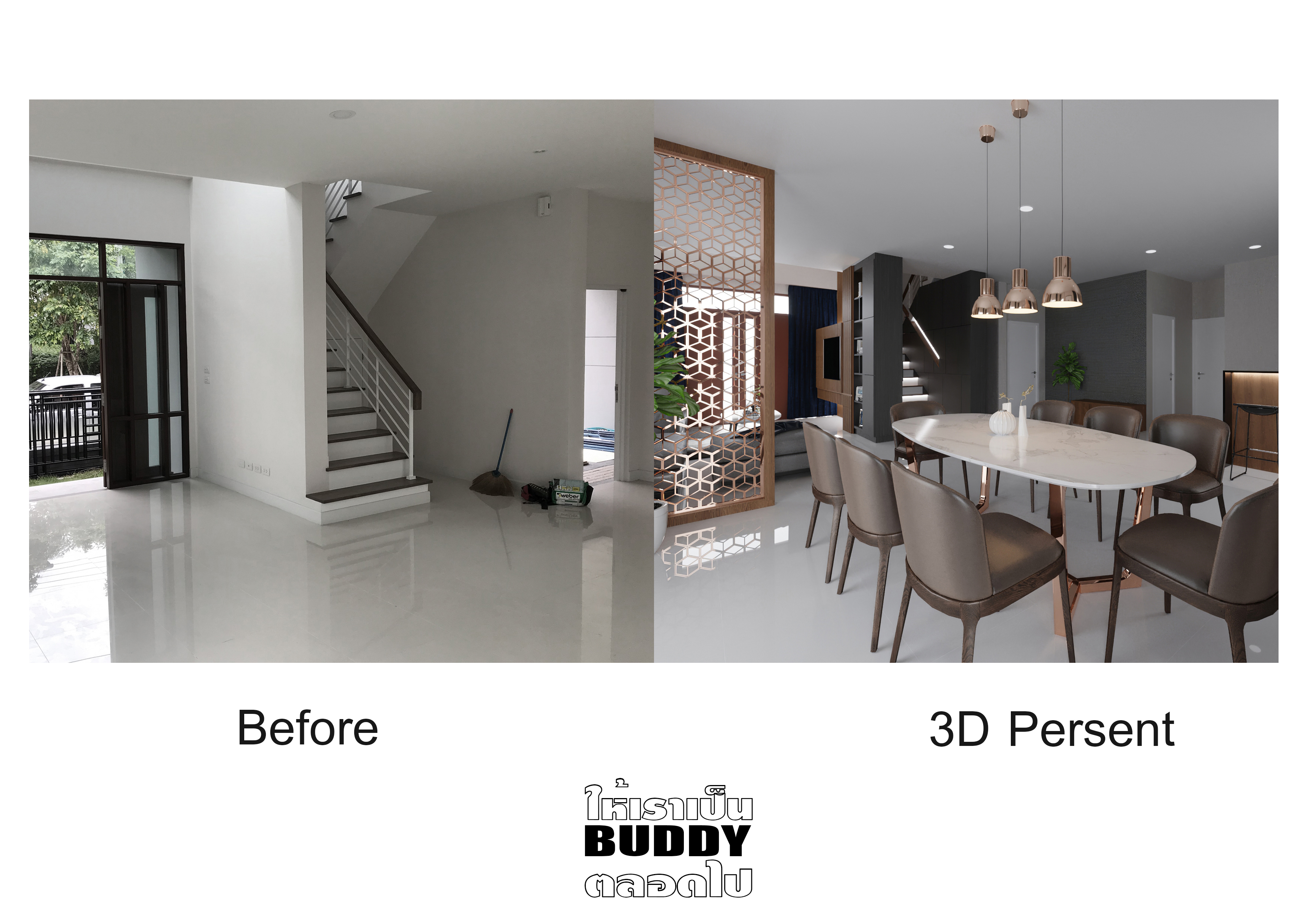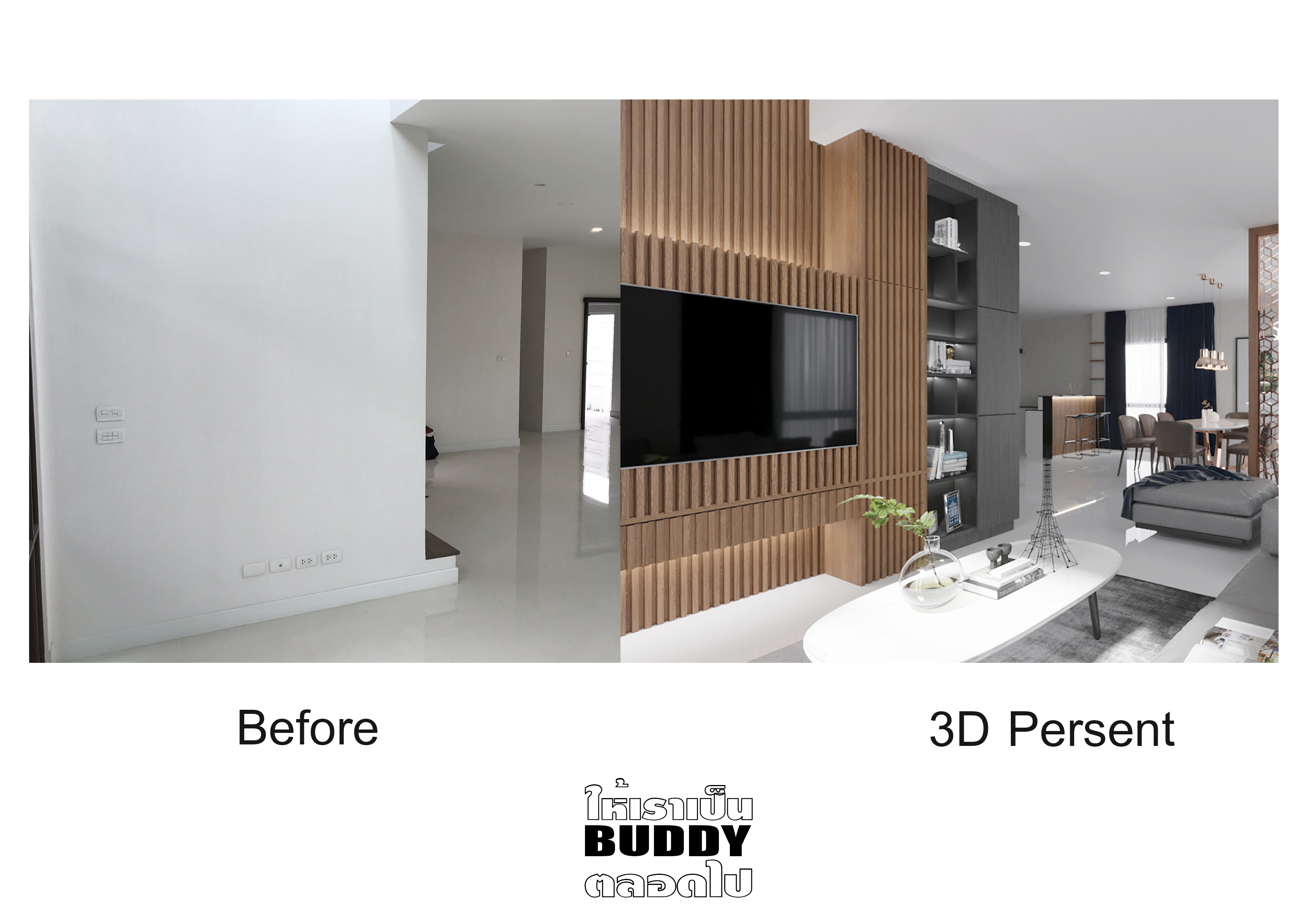 งานปรับแผนผังเดิมของบ้านเดิมตามความต้องการของลูกค้า งานระบบไฟฟ้า งานเฟอร์นิเจอร์บิ้วอิน งานม่าน และ wallpaper ระยะเวลา ผลิตที่โรงงาน30วัน และหน้างาน45วัน