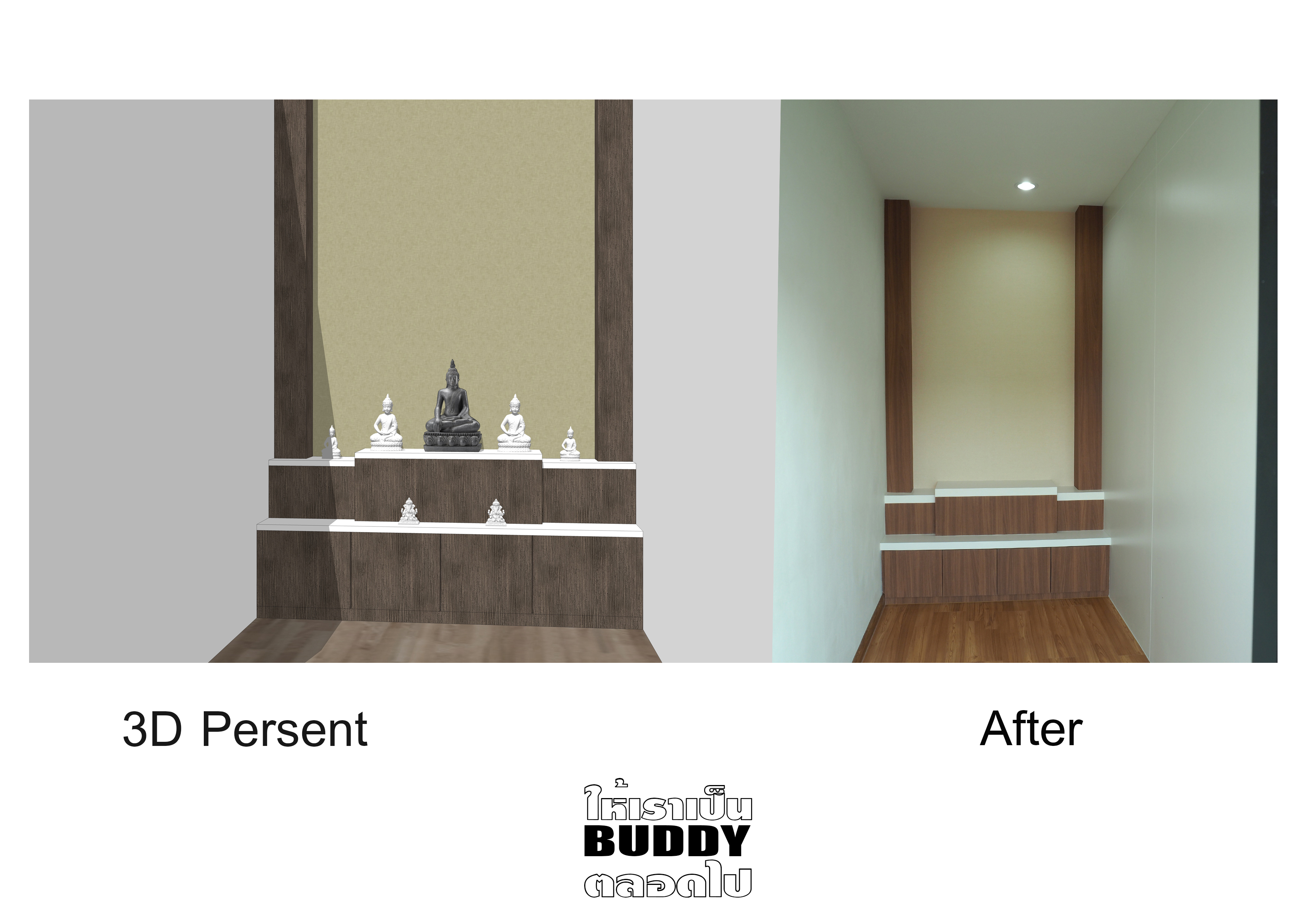กั้นผนังกระจกลามิเนต ห้องพระ