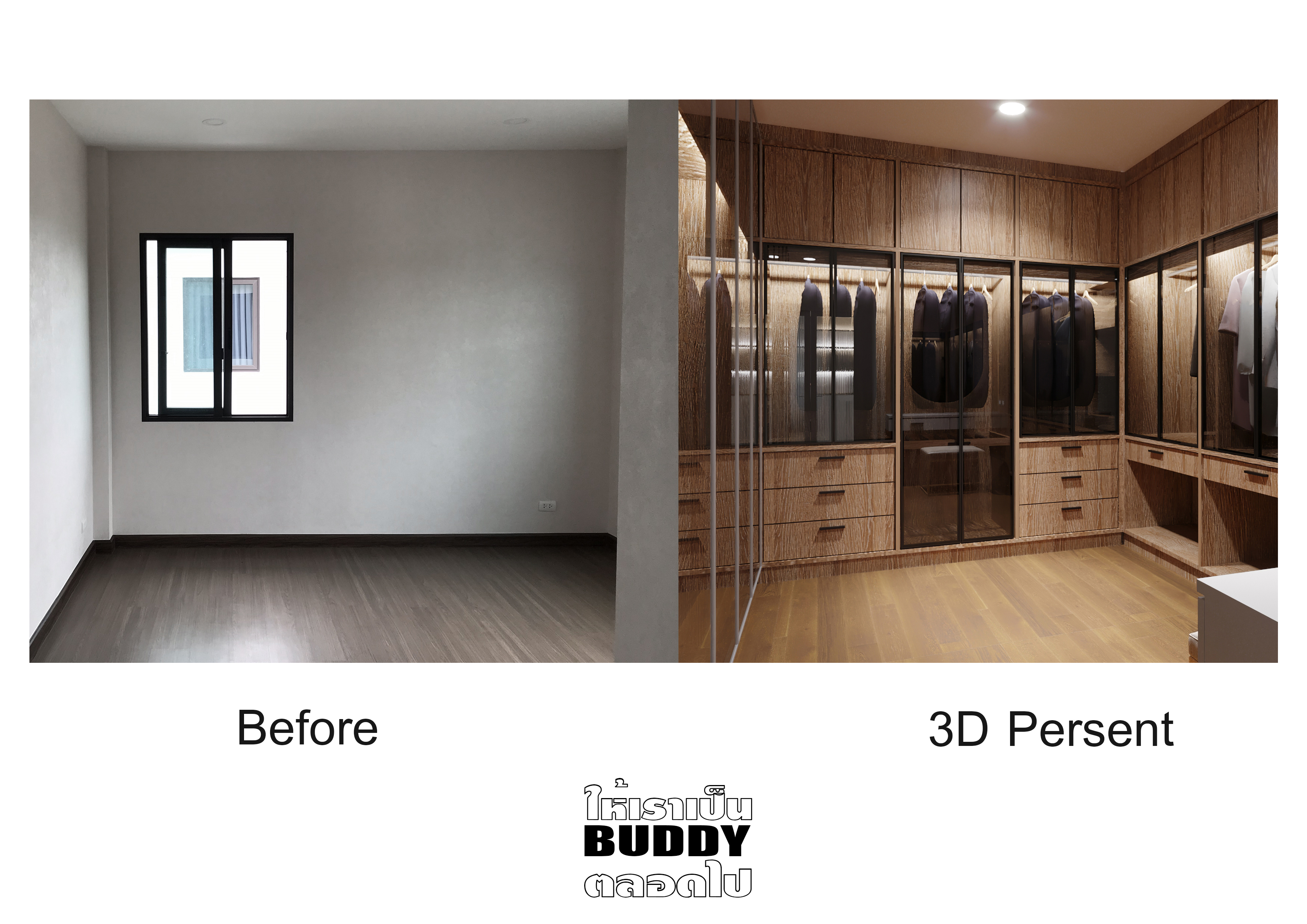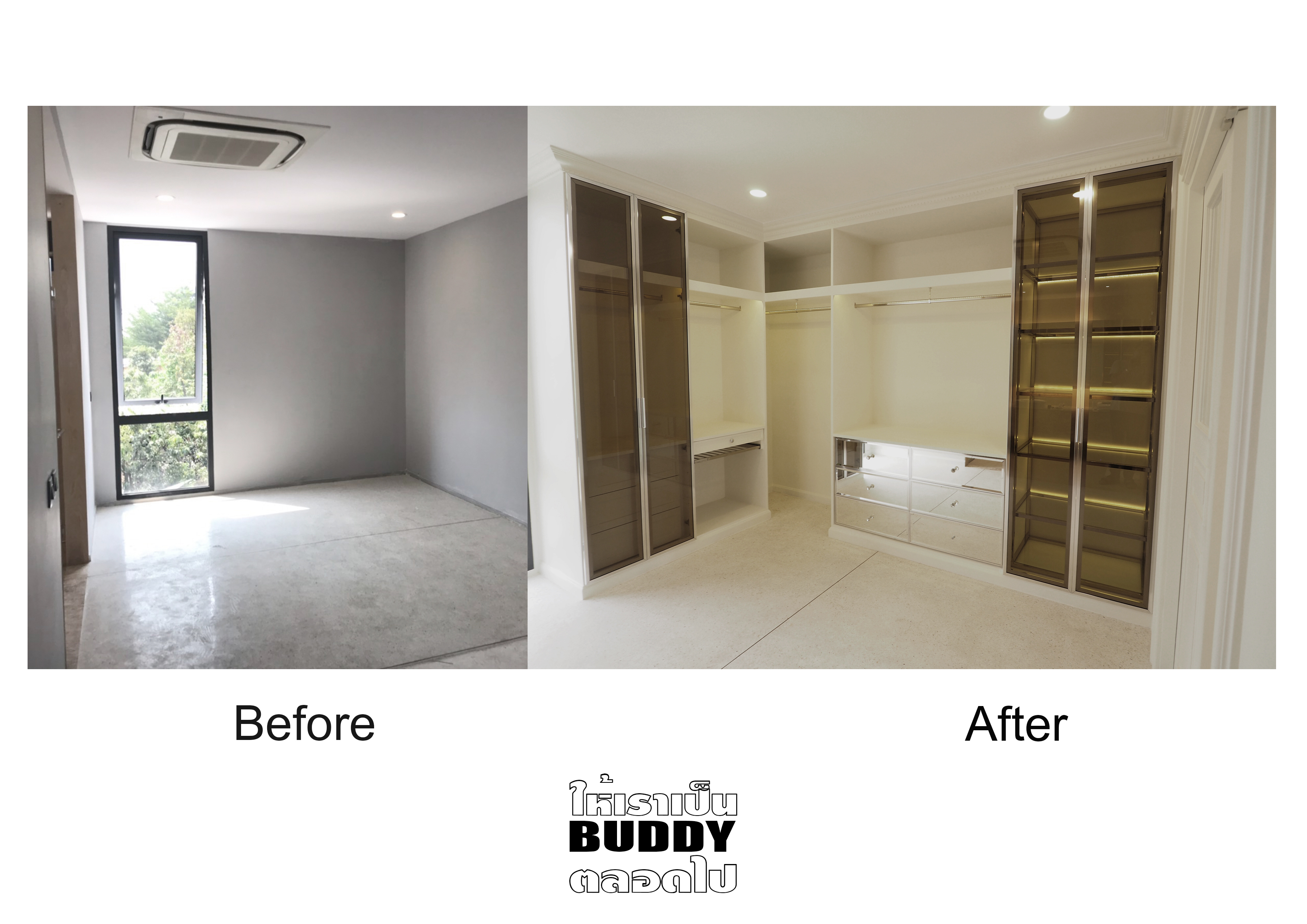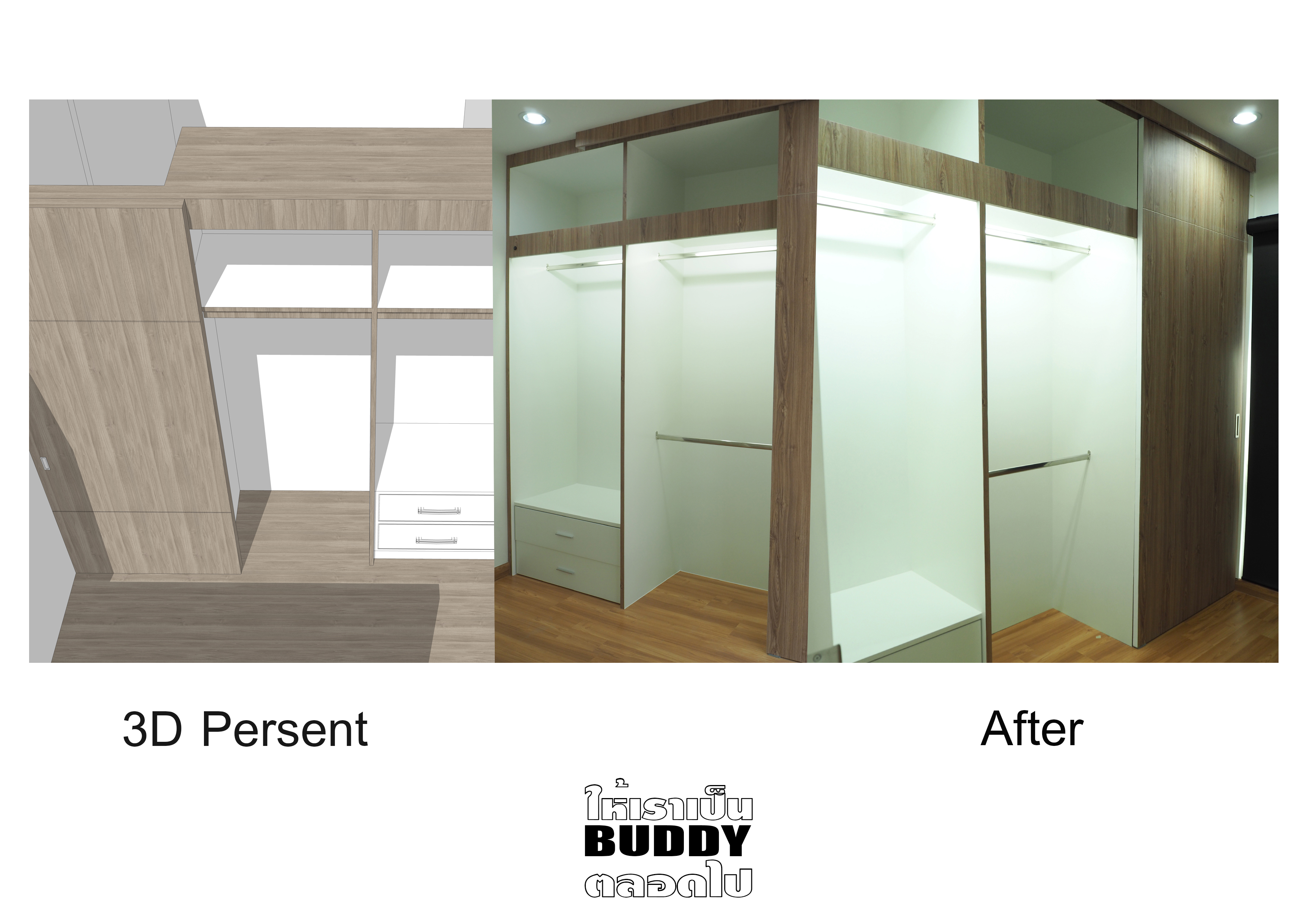 งานผนัง ติดคิ้วตกแต่งสี่พ่น #walkincloset